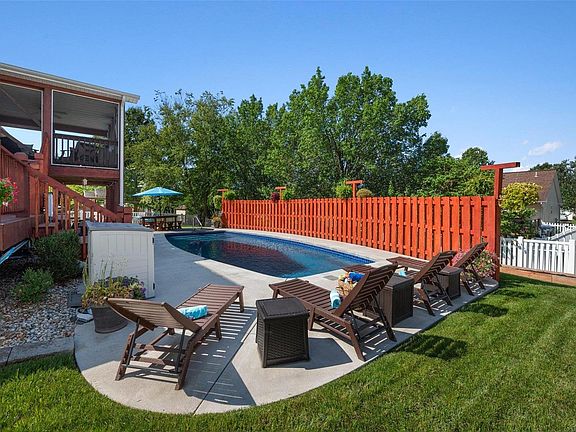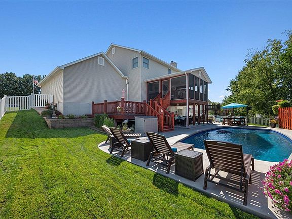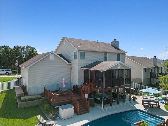 MUST SEE - Stunning 2 story home with gorgeous pool and entertaining area in sought after Villages of Dardenne. Pride in ownership is evident from the moment you step out of your car. The totally updated 1st floor features newer wood flooring, built in shutters, an elegant dining room with judges panel, a home office with built in bookcases and glass French doors that lead to an awesome living room/kitchen area. The inviting kitchen features a tile backsplash and Granite countertops and stainless appliances and doors leading to the covered/screened deck. The 2nd floor features a huge primary suite with updated bath with shower and separate standalone soaker tub, 3 additional bedrooms and 1 more full bath as well. The walkout lower level features a full bath a great living/play area with plenty of room for seating. All of this in a great family friendly neighborhood with community pools, walking paths and in the sought-after Fort Zumwalt school district! This one is waiting for you!