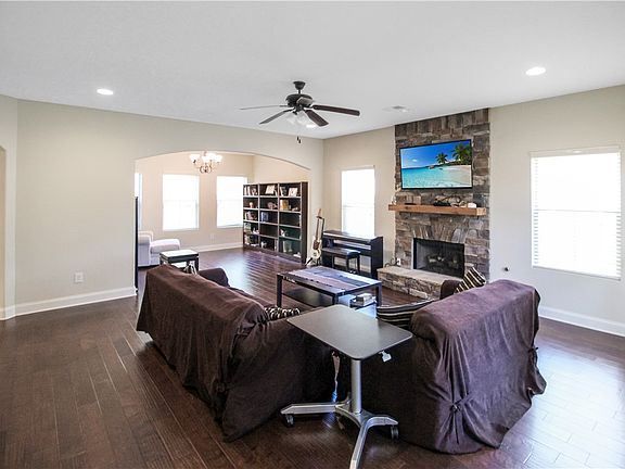 The Tivoli community is inspired by an old world charm of an Italian village, and this home is a charmer! This Italian charmer has all the modern features sure to please any buyer...including hardwood floors throughout the home. The main floor consists of a large living room with a beautiful stone gas fireplace, a formal dining room with coffered ceilings, rounded archways passing through the living areas, spacious kitchen with an extended island showcasing the granite countertops, also including a true vented hood, and the 4th bedroom with access to a full bath. Leading up to the second floor is a beautiful staircase. The 2nd floor consists of 3 bedrooms including the primary suite that is oversized with a tray ceiling. There is also a sitting/personal office space in the primary suite. Bedrooms 2 & 3 are adequate size and share the guest bathroom. This property has a great backyard with plenty of space surrounded by a privacy fence & backs up to the Kreher Preserve & Nature Center.