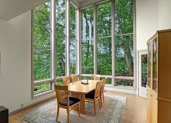 Architect designed contemporary in treetop setting. Walls of windows showcase ever changing views to the garden and beyond. Cozy family room adjoins the kitchen and opens to decks to enjoy the greenery and territorial views. Privacy is valued here, with wonderful nooks for every member of the household. Romantic master suite, spacious living room, open to below. Lower level play/media room and guest room, mechanicals. Terrific storage, and space for future elevator.