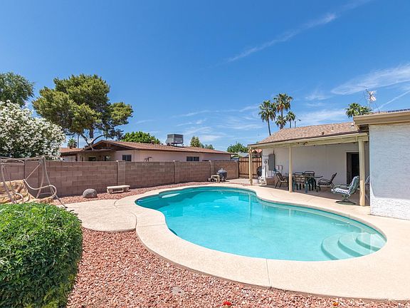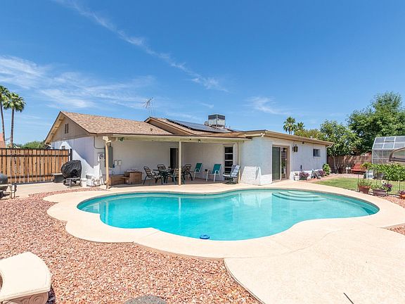 Great curb appeal for this lovely 3 bed, 2 bath home with Solar. Extended driveway leads to the RV gates. Enter to a tiled floor family room. Spacious open floor plan for the kitchen, dining and family room. The eat-in kitchen has white cabinets, laminate counters, white appliances. Inside laundry. Sizable secondary bedrooms. Master has a full bath. The backyard has a covered patio, sparkling pool, greenhouse and nice grass area. Easy access to shopping and the I-17.