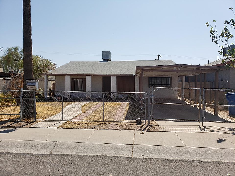 This is a very unique opportunity. The County Zoning is (C-G), Commercial General, The City Zoning is (C-3)Commercial and General Commercial. It has been used as a residence and the tax bill shows it is a residential parcel as the ''property type'' and ''legal class''. There is an alley access to the property in back. It is located very close to I-17 and frontage road. The main house is 1626 square feet with 4 bedroom and one bathroom.There is a separate quest quarters in the back yard that is 495 square feet, with one bedroom, one bathroom, living room, kitchen and dining room.Some of the plumbing has been removed from the main house from the laundry room as well as the swamp cooler. Therefore, this will be sold in as-is condition with cash only (no loans).