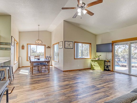 This fully fenced on 2.03 acres offers updated kitchen and bathrooms, ADA access, beautiful mountain views AND a 30'x40' shop! Outside, this 2-acre lot is just down the street from thousands of acres of BLM land. The 30x40 shop is heated and insulated, all-metal, sits on a 5.5'' thick concrete slab has 220 power with it's own meter and RV electric hookup. This property offers tons of parking and a blacktop circular driveway. The hardie plank siding and metal roof will protect the exterior from all of the elements and the heat pump with AC and wood stove will keep you comfortable no matter the season. Inside, the home is light-filled and airy with vaulted ceilings and thoughtfully updated with quality finishes, like Life proof vinyl flooring, LED lights throughout, The kitchen features quartzite counters, solid wood soft-close cabinets/drawers, and farmhouse sink. The ADA-main master bedroom has a separate entrance and is ADA accessible. Both bathrooms have updated granite countertop