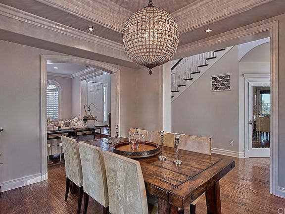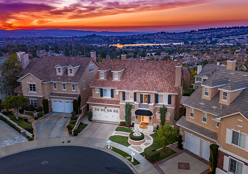 Magnificent 5 bedroom 3.5 bathroom home with outstanding curb appeal located at the end of a cul-de-sac, this home is the epitome of luxury living. From the moment you step inside you are immediately embraced by the opulence and splendor of this wonderful home. The formal living room with fireplace leads to a sizable dining room with an extravagant chandelier. The great room boasts two-story soaring ceilings with full wall built-ins and fireplace. Chef's gourmet kitchen features stainless steel appliances, center island, butler's pantry, wine fridge, and ample cabinetry space for storage. The lower level includes an office, and a guest bedroom with full en suite bath. Two separate staircases lead you to the upper level. Upstairs master suite has breathtaking panoramic views of the hills, Lake Mission Viejo and mountains. Spa-like master bath features his & hers sinks, separate soaking tub and shower and two oversized full-length mirror closets. 3 secondary bedrooms complete the upper level. An expansive bonus room takes up the entire third level. Experience designer upgrades, crown molding, recessed lighting and plantation shutters throughout. Gorgeous dream backyard with inspiring panoramic views includes 2 fire pits and plenty of seating space to enjoy the views. Experience the best of Mission Viejo's retail shops and dining. Call to schedule an appointment today!