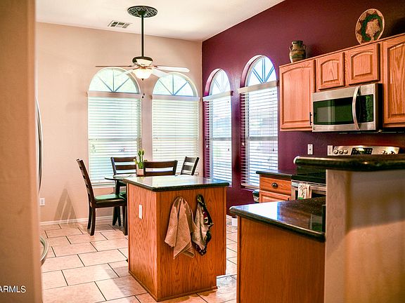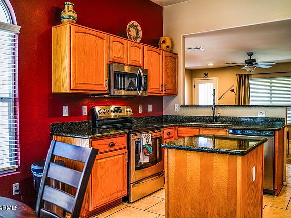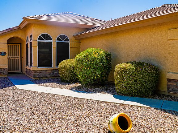 Home for sale in the active adult & golf course community of Sundance in Buckeye, AZ. This home features 3 bedrooms & 2 bathrooms. The kitchen has stainless steel appliances, island, black granite countertops, walk-in pantry, & breakfast bar. Spacious master bedroom w/ walk-in shower. Fenced, low maintenance backyard w/pavers & artificial turf. The Sundance community offers over 20 clubs for residents covering a variety of interests from fitness, quilting, bridge, canasta to tennis and water volleyball as well as a variety of amenities: 2 swimming pools, hot tub, gym, and an 18 hole championship golf course.