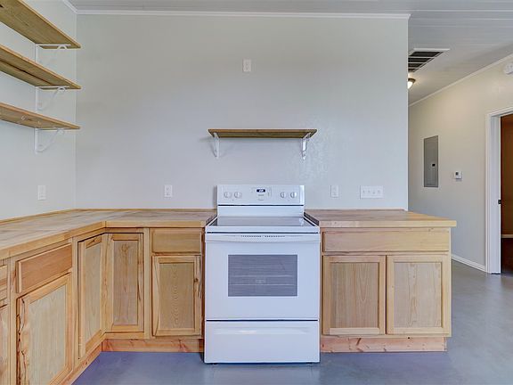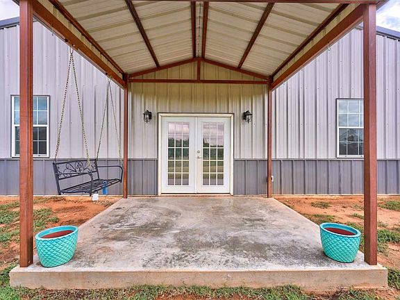 9’ tall ceilings, painted pine shiplap ceilings, French doors and tall windows to view landscape and allows for tons of light inside. Natural colored kitchen cabinetry with oiled butcher block countertops and open shelving. Step outside onto the front patio and watch the stunning OK sunsets or view an abundance of wildlife right from your own porch swing. All appliances stay, including washer and dryer in the garage area. Brand new water softener. 50’x70’ building (3,500 sq ft) with approx. 1,200 sq ft finished interior. Exterior RV plug installed near garage door. 10x10 garage door with opener. With 2,300 sq ft garage space, easily fits multiple vehicles, atvs, tractor, trailers, or use as a commercial business space! Multiple fenced areas for livestock and pets. Finished shed (fully insulated, electric, has range plug) with rustic pine shiplap ceiling. Currently has doggie door and small walled off area for animal use, but could easily be converted into a guest space. Or easily add additional living space inside the metal shop! The possibilities on this property are endless!!!