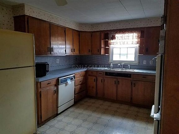 This home has hardwood flooring and a fireplace in living room. Carpeting throughout needs to be replaced. This home has baseboard heat and spacious rooms. Other repairs and updates may be necessary before move in ready. Great potential! Property sold in its "AS-IS, WHERE-IS" condition. Seller does not prorate taxes. Buyer pays all closing costs. Buyer to verify all information.