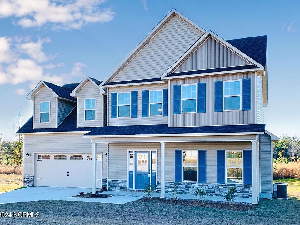 Atlantic Construction's Charleston plan sits on a whopping 2.7 acres and features 2149 heated square feet & the space to meet your needs both upstairs and downstairs! The ground level has a spacious living area with a gas fireplace, a large kitchen with a pantry, & a formal dining room. The upstairs owner's suite features a trey ceiling with not one, but TWO walk in closets, double vanity sinks, and a separate soaker tub and walk in shower in the bathroom. The other two bedrooms share a bath, and the bonus room might be the perfect spot for a home office, game room, or play room for all those toys! There will be no HOA but there will be deed restrictions. You are just a short drive from MCAS New River, Camp Lejeune, Stone Bay, or the beaches of Topsail Island from this location just 7 miles from the stoplight in Holly Ridge. Call a Realtor today for more information on this brand new home ready in August 2024!