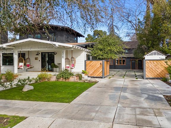 Originally built in 1913 by Colonel Baker's Grandson, Thomas Baker. The Owners have improved the Home with the following: Entry with new metal French doors, one bedroom or office off the Entry, large Living room, fireplace with gas insert, Formal Dining with built in cabinets and window seat, Remod Kitchen offers: concrete counters, apron sink, gas stove, dishwasher, pantry and laundry closet, 2 bedrooms 1 bath downstairs, primary bedroom and 1 bath upstairs, utility basement and storage area. All New: windows, plumbing, electrical, paint, flooring, lighting, landscaping front and rear with auto sprinklers, front porch, back decking, firepit, fenced dog run and private hot tub area! All new concrete: front porch, side walks, side yard with electrical wrought iron gate and back yard walk ways.