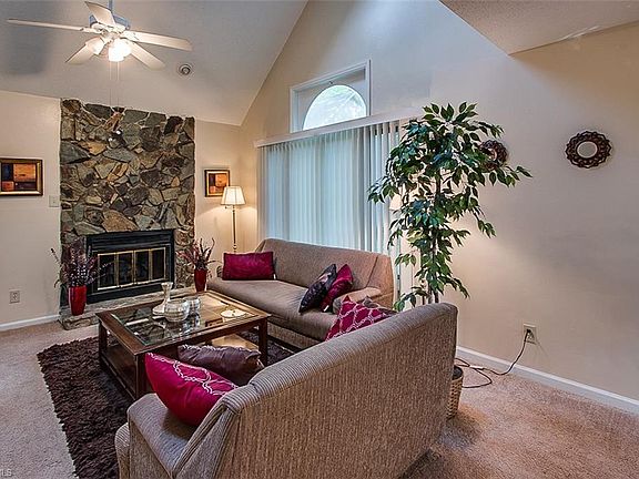 Adorable 2 bedroom, 1.5 bath townhouse in Hearthstone. Den has skylights and a stone fireplace. Dining area overlooks the enclosed patio. Kitchen has built-ins in the dining area. Main level laundry and a one car garage. Master bedroom has an open vanity area and two closets. Close to shopping, major highways, and public transportation.