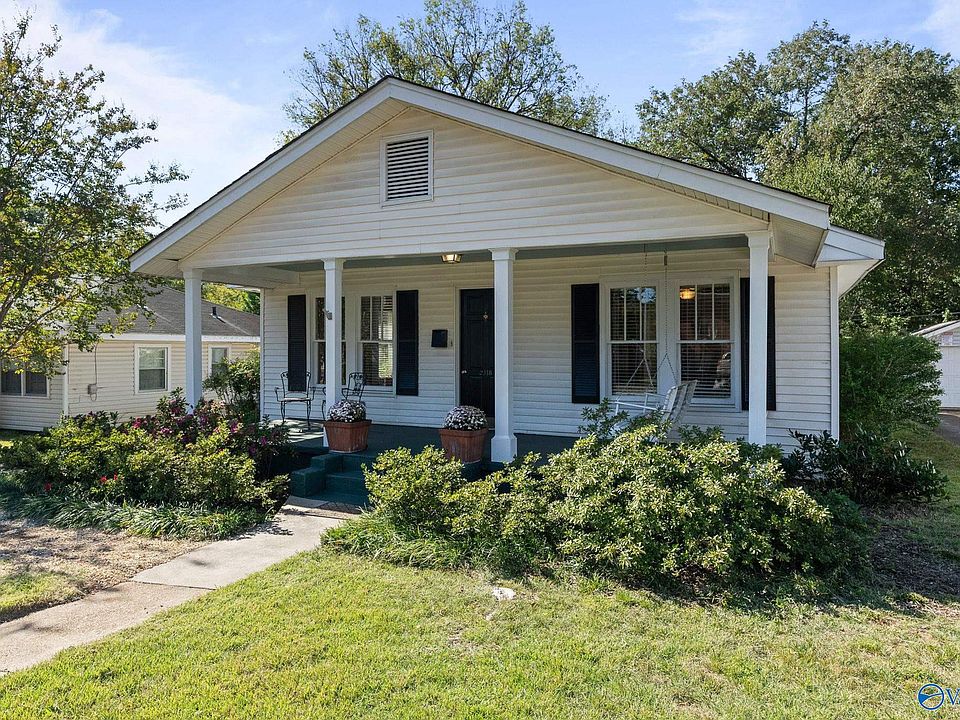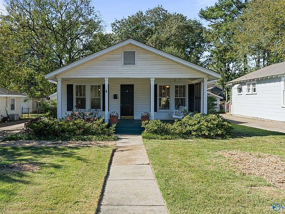 This lovely 2 bedroom, 2 full bathroom bungalow with vintage charm is located in Huntsville’s sought after Medical District. This cozy home with a wide and welcoming front porch features large dining and living rooms with beautiful hardwoods and fresh paint. The tile floor kitchen with granite counters, generous built-ins/pantry, and laundry opens to the sunroom and private patio with a large fenced-in backyard and access to a storm shelter, covered parking and large detached garage. Ensuite primary bedroom with large walk-in closet. New carpet in both bedrooms. Walk or drive to shopping & dining with easy access to all of Huntsville & Madison. Prime location as a residence or investment.