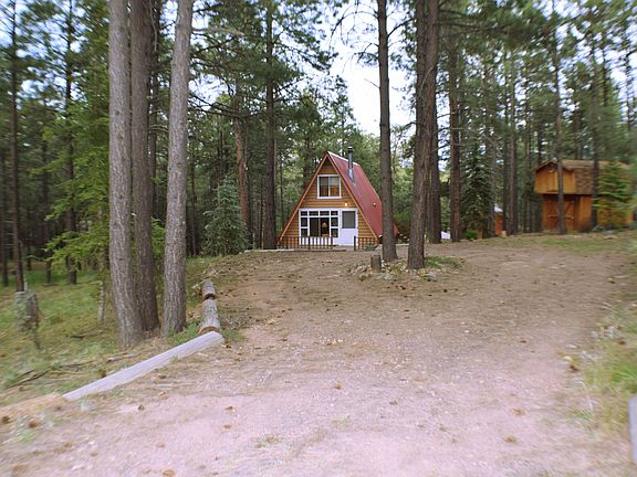 Darling A Frame Cabin that is appointed nicely on a 1 Acre Lot in Forest Lakes Estates! ALTERNATIVE SEPTIC SYSTEM so room for EXPANSION, if one desires. Home features a great room floor-plan centered around the wood burning stove. Eat in kitchen with all the essentials! One bedroom and Bathroom on the main level. Second Level is very Spacious and makes for a great sleeping loft. Front deck offers great curb appeal and back deck is elevated for amazing views of the land and privacy. Large Storage shed with laundry area and loft for additional storage or outdoor sleeping quarters. Home is being offered in AS IS condition and all contents Convey so it is MOVE in READY! Come see why everyone LOVES Forest Lakes. NO HOA, floa.org is a helpful resource. Make an Appointment to See Today!