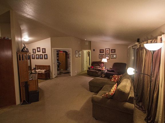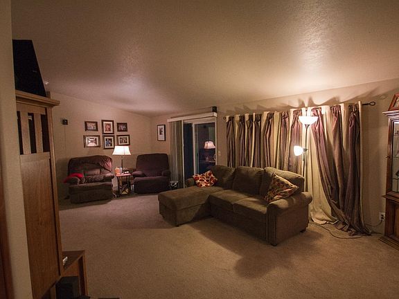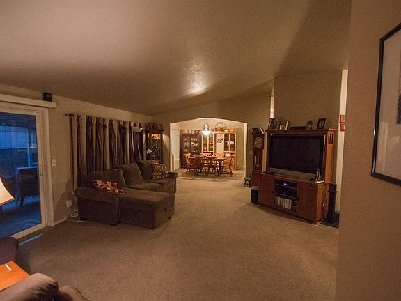 Lovely, spacious home for easy living! Enter the large family room w/vaulted ceiling and open floor plan. There is a big dining area that opens to a wonderfully designed kitchen that has an island w/a bar stool counter, stainless steel appliances, unique counter w/bull nose insert & tons of wood cabinets. Split floor plan w/master bedroom & bath on one side & two other bedrooms and full bath on the other side for great privacy for all!