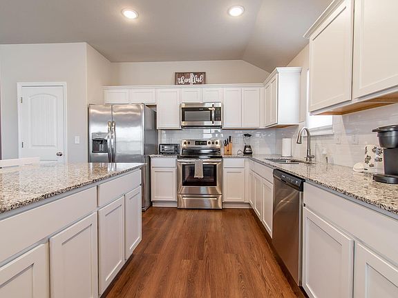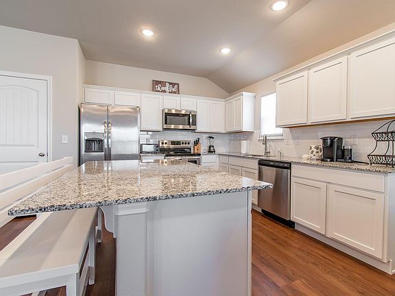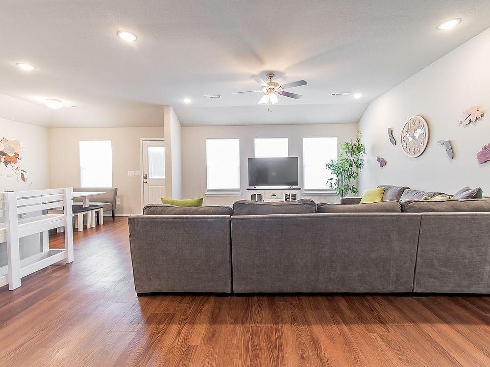 Built 2021 so everything is fresh and new. Bedroom 1: King bed with master bathroom tub/shower. Bedroom 2: Queen bed Bedroom 3: Queen bed Bedroom 4: 2 twin beds 2nd bathroom also has tub/shower Indoor laundry room Great room is huge! Granite kitchen with walk in pantry. Large yard not fenced in Available until June 30, 2022. No pets allowed. Garage not available for use. Driveway and street parking available.