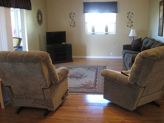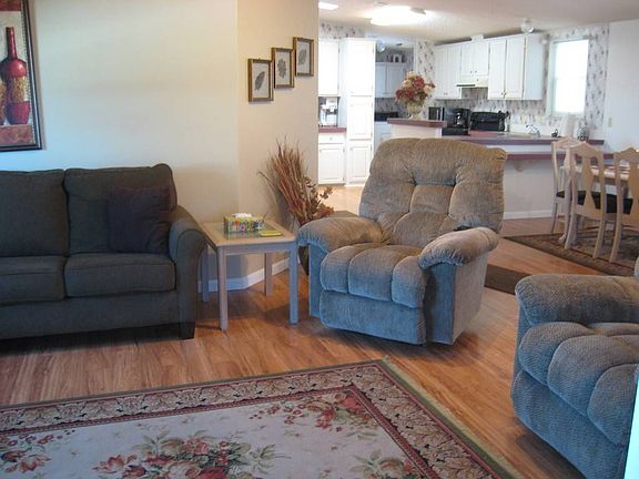 Nicely Maintained and Beautifully Furnished Turnkey Home............WONDERFUL HOME....WONDERFUL PRICE............ This is a lovely home located in beautiful Four Lakes, a 55 plus gated community with homes on lot leased land. Here you own the home but not the land. Paying monthly lot rent also gives you and your guest access to the amenities of the community............. This great home features two bedrooms, two baths, bright open floor plan, dining room, two Florida rooms, newer tilt windows, new tie-downs, and it comes turnkey!............ The living room is open to the dining area and kitchen, which features plenty of counter space and cabinets. Of course, all appliances are included............. The master bedroom has a walk-in closet and the master bath features his and her sinks, walk-in shower and a linen closet............. Sliding glass doors in the living room lead to a spacious front Florida room with glass windows...a perfect place to relax!............ The wide deco drive leads to an oversized screened area (located off the kitchen/ laundry room area) and to the golf cart shed...which yes, includes the golf cart............. This is a great home...and remember, it comes fully furnished!