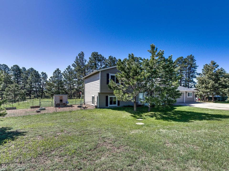 Nicely updated 4 bedroom 2 bathroom home on 2 private acres. This home sets on the perfect lot in Western Country Ranches not only backing to the creek and open area but the land to the east side of it is open community area as well!! Once you step in the door you are met with vaulted ceilings, solid surface floors and much more!! Come enjoy beautiful Colorado sunsets on the large back deck while the kids and animals play. Seller has found replacement home bring all offers!!