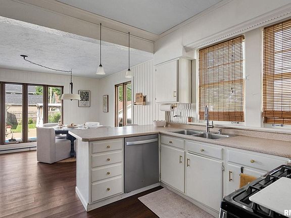 Beautifully updated 3 bed, 2 bath home with outdoor oasis complete with inground swimming pool! Located just one block from Vander Veer Park and St. Ambrose University! This spacious 2-story offers over 2,000 sq ft of living space with the perfect blend of historic charm and modern updates. The main level features a light-filled living room with fireplace, a formal dining room, an updated kitchen with breakfast bar, all appliances stay, and eat in dining space! Convenient main floor laundry. Bright 3-season sunroom off the back offers additional living space. Upstairs includes 3 generous bedrooms, a remodeled full bath, and walk-up attic for additional storage. A second full bath on the main level is also recently updated. The fenced-in backyard is ideal for entertaining with a large patio, deck, two ponds, and a 16x34 in-ground pool with a brand new liner (2024), updated pump and filter (2021). Oversized 2-car garage provides excellent storage. Additional updates include remodeled kitchen and baths, new light fixtures. All appliances stay. Move-in ready with timeless character and thoughtful upgrades throughout!