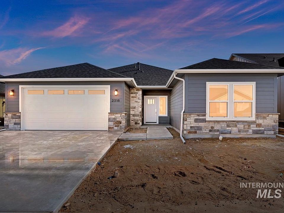 This thoughtfully designed single-level floor plan offers three bedrooms, two full bathrooms, and a two car garage plus tandem. With 9-foot ceilings throughout and an impressive 10-foot ceiling in the living room, the open-concept layout feels spacious and inviting. A floor-to-ceiling stone fireplace serves as a stunning focal point in the living area.The home features durable LVP flooring in main living areas, plush luxury carpet in bedrooms, and stylish barn doors in the master bath. A well-appointed mudroom and ample linen storage add to the home's functionality.The chef’s kitchen boasts stainless steel appliances, soft-close cabinetry, a butler’s pantry, and high-end fixtures. A full backsplash and beautiful cabinetry complement the space, while a farmhouse-style workstation sink enhances both style and practicality.Enjoy outdoor living with a covered patio, full fencing, and front and backyard landscaping to be included to complete the home’s exterior appeal.