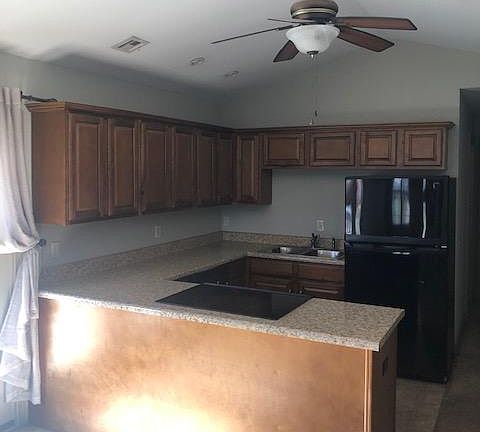Adorable home in the heart of Joplin. Featuring vaulted ceilings in living room, kitchen, and master bedroom. Fenced in yard, covered front porch and side patio. side patio has extended concrete pad. This home is move in ready with new roof and guttering. About a mile or so to KCU Campus. Conveniently located near Joplin High School and medical communities. Six month or one year lease, no smoking, one pet may be considered on case by case basis
