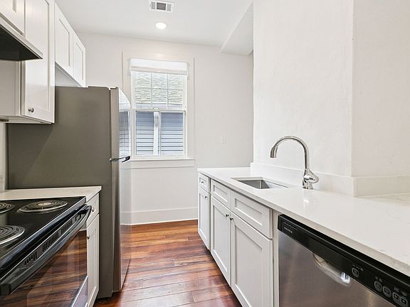 Totally renovated 2-bedroom, 1-bath unit in a historic shotgun double! This beautifully updated property was completely renovated in 2025 and features 10' ceilings, gleaming wood floors, an open floor plan, high-end kitchen cabinetry, quartz countertops, stainless steel appliances, a small pantry with washer/dryer hookup, two private bedrooms with their own baths, and great closet space. The rear yard is private and exclusive to the unit, and gated parking is available for added convenience. Schedule your tour today at leasenola. Leasing criteria: income must be at least 3x the monthly rent, minimum 600 credit score, all adults over 18 must apply, proof of income required, security deposit equal to one month's rent (unless credit is below 600), and pets are welcome with a non-refundable fee of $300 for one pet or $500 for two pets, plus monthly pet rent (dogs up to 60 lbs allowed). Your new home is waitingdon't miss out!