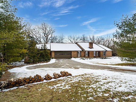 Enjoy your little piece of paradise in a serene, private setting on approximately 4.15 acres. This 3 bdrm 2 bath ranch boasts an updated and comfortable living space with open floor plan including a cozy living room with wood burning fireplace and a den/office with built in bookcase and french doors. The updated kitchen is open to an expansive family room with fantastic views and is great for entertaining. You'll also appreciate the updated baths and sizable bedrooms. The mudroom includes built in cabinetry that leads to a two car garage. In addition to the garage there is a tractor bay large enough for a large riding mower and extra storage. Don't forget to climb the ladder in back of the house that leads to an awesome man cave/kid's play room with a custom bed in case the kids have a sleep over. The backyard offers a multilevel deck overlooking the woods and creek and an additional custom outbuilding/wood shop. Nothing to do here but move in and enjoy.