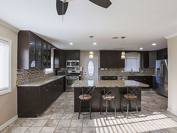 Welcome to your forever home! This beautiful split-level home is located in the heart of Baltimore County and sits on a huge 16,000Sq. Ft. property. The entrance to this home boasts two gorgeous large Mahogany and Frosted Glass Doors and a foyer with a large coat-closet. The Kitchen is beautifully renovated with stunning Italian Granite countertops, a large Island, stainless steel appliances and a plethora of cabinet space. The open concept dining room has a stunning designer chandelier and beautiful sliding glass doors that lead to a large wooden deck with a picturesque forest backdrop. This 4 bedroom, 3 bathroom home boasts a large primary bedroom with a huge walk-in closet, built-in shoe rack and an en-suite bathroom featuring floor-to-ceiling Marble and a Jacuzzi tub. All of the bedrooms have spacious closets and the downstairs bedroom has a large walk-in closet lined with shelves. There is an additional family room on the lower-level with a fireplace for those chilly winter nights! As you continue through this hidden gem of a home there is a laundry room complete with a washer, dryer, sink, and a second fridge. There is also an enormous basement equipped with a marble Wet bar, sink, quaint wine cellar (with its own AC unit) plus a door that leads you right into the backyard. Conveniently located across from the Quarry, with an array of fine dining restaurants, and within a 10 minute drive of all local schools. Total SF includes the finished basement, buyer to verify.