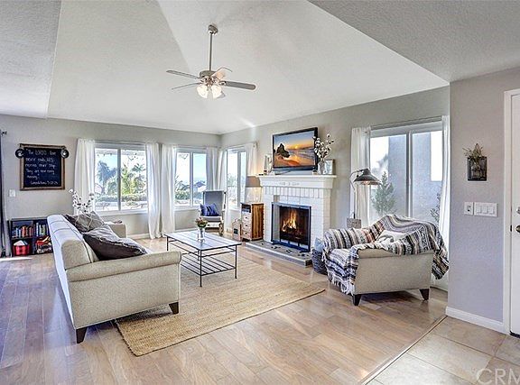 Ocean views as far as the eye can see!!! This beautiful 4 bedroom, 3 bathroom home is located on a single loaded, cul-de-sac street in the highly desired community of New Providence. Upon entering the home you are greeted by ocean views, vaulted ceilings, and a bright, open floor plan. The upgraded kitchen offers shaker style cabinets, stainless steel applianced, granite counters, and ocean views from the kitchen sink. The living room boast vaulted ceilings, laminate wood floors and a white brick wood burning fireplace. The down stairs features a bedroom with a full bathroom. Upstairs you will find 2 bedroom, a full bathroom, the master bedroom and master bathroom. The master boasts raised ceilings, a walk-in closet, and a well appointed master bathroom. To finish it all off, you can enjoy the sunset over Catalina from your very own backyard!