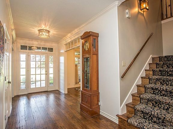 $100,000 price reduction. 2.27 acre in Gated Community. Beautiful full brick home with spacious rooms. Granite & stainless kitchen open to great room w/fireplace-view of pool, spa, & grounds. New hickory wood floors - fresh paint. Updated master bath, master suite has sitting area. The kitchen has a gas cook top and stainless steel vent hood. Spacious breakfast nook overlooking the pool. Double ovens for lots of baking. Huge laundry room with sink and half bath with access to the pool. Upstairs has a second laundry room, 3 spacious bedrooms with private baths all updated. Gameroom with walk out storage. Please enjoy the pictures and call Frankie Harkey with McGraw Realtors at 1.918.230-6315 for more information and to take a look at the house.