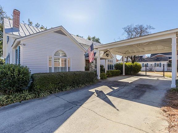 Charming historic Summerville Carriage House, restored and maintained dating back to 1911! Very quaint, primary suite on main level. Beautiful wood floors and mill work. Spacious great room with gas fireplace and floor-to-ceiling bookcases surround the palladium window. The dining room offers a built-in china cabinet and floor-to-ceiling window - stunning! The kitchen, with newer appliances, has a light filled breakfast room and sizeable pantry. The primary bedroom is delightful, french doors open to the covered and uncovered patio. The gardener will enjoy the yard - numerous gardens. Single car detached garage, gated circular drive through porte-cochre sized for 2 cars. Walking distance to schools, including AU, Appleby Library, and Augusta Country Club. Close proximity to restaurants also. This home is a delight to show. Appointment only please.