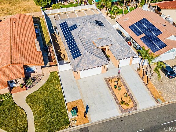 Basically New Construction………..House is just under 2100 square feet with 4 bedrooms and 2 full baths. Master bath has a massive 10’ wide walk in shower and separate free standing tub with large walk in closet. Custom wood shutters on most interior windows, custom cabinets and granite countertops throughout, walk in pantry, upgraded appliances with air fry oven. LVP flooring throughout living areas and carpet in bedrooms. Full alarm system hardwired to every door and window, 7 security cameras to DVR and stream to phone. 3 car garage with 4 car parking, 8’6” wide boat/ RV sparking on side of house. 44’ wide by 13’ deep alumawood patio cover with LED lights and ceiling fans. Full back yard drainage from back to curb. Back yard is ready for turf or any landscape design you have in mind. Also back patio is plumbed for outdoor bbq. Net zero assumable leased solar system that costs $105 a month with a 20 year warranty that leaves you with a zero dollar Edison bill every month!