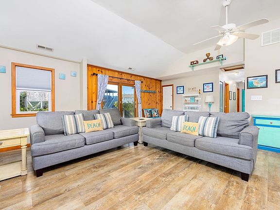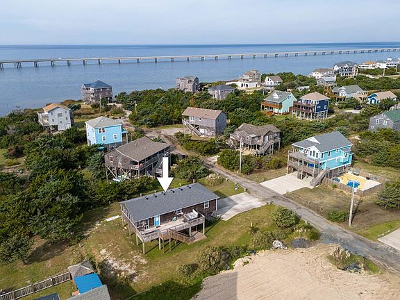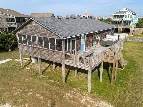 Escape to this charming single-story cottage in Rodanthe, North Carolina, perfectly situated between the sound and the ocean. This cozy three bedroom, two full bath retreat offers the ideal haven for fishing enthusiasts and beachgoers seeking long, relaxing days on the sand. The Queen primary bedroom offers an en-suite bath with step-in shower, and a jacuzzi tub can be found in the hallway 2nd full bath. The cottage’s great room features cathedral ceilings, creating a bright and open living space perfect for unwinding or gathering with loved ones. The property is sold fully furnished and completely turn key, including 4 Roku Smart TV's. Outside you will enjoy a spacious side yard, a large side sun deck, and a rear screened-in porch. The property also comes with exterior motion sensing security lights, 2 ring cameras, and parking for at least 6 vehicles. The outside shower is ideal after a long day at the beach, and the ground level (approx. 7x16) storage area is perfect for storing all your beach and fishing gear! Step outside to savor refreshing breezes from the Pamlico Sound or soak under the stars in the brand-new 6 person hot tub. Recent improvements include: New Fortified Roof '24, New interior doors and paint '24, New entrance door '24, a New septic tank and drain field (upgraded with 4 lines), and a new washing machine '25. Close to the Rodanthe Fishing Pier and just a short distance to the Ocean ... Your perfect beachside respite awaits!