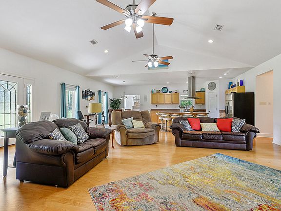This stunning custom-built brick home, with 30' x 40' metal shop and additional cottage home, is a must-see! Situated on 7.7 acres, you will feel at home the moment you step in the door. The gorgeous open-concept kitchen and living room area is the perfect place for entertaining, with fireplace, cathedral ceiling, large island, plentiful custom-built cabinet storage, and stainless-steel appliances. Downstairs includes 10' ceilings, office, 3 bedrooms and 2 full baths, including the master suite, which boasts a walk-in closet, bathroom with double vanities, and custom tiled shower. Upstairs includes 2 bonus rooms, currently used as bedrooms. Cottage home is 800 sq. ft., with kitchen, living area, bedroom, bathroom, and bonus area. Home is pre-wired for whole-house generator with disconnect.