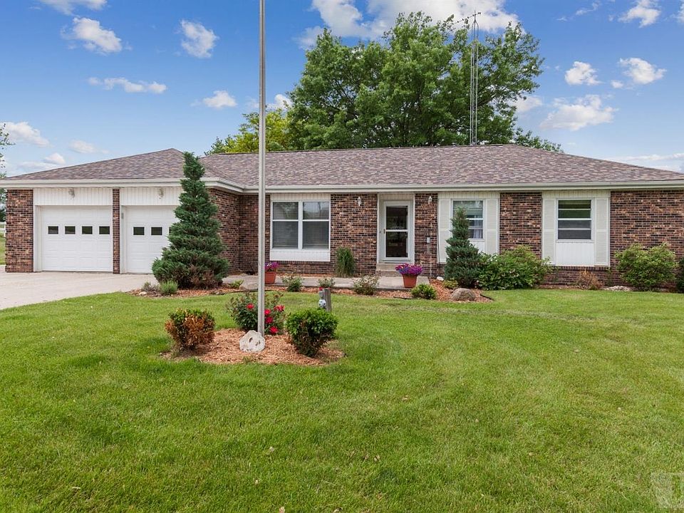 Beautiful brick ranch home on outskirt of county seat, Sigourney. Sits on double lot. Finished basement that has 3/4 bath and kitchenette. Washer/Dryer hookups both upstairs and downstairs. City water/sewer hookup, but located just outside of city limits. New roof in 2013. New furnace, AC unit, water heater, and all major appliances in 2019-2020. Two door attached garage, single stall detached garage, and 8x10 storage shed. Fenced in back yard with stamped concrete patio perfect for s'mores around a fire pit.