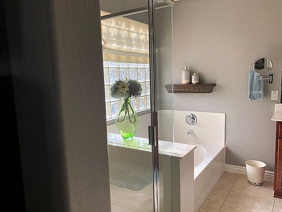 Totally turn key home in 55 and older Sundance Community. This Immaculate 2 Bedroom 2 Bath with craft room/office 1443, sq/ft home offers many upgrades. Tile outside entry, custom steel security door, PVC Irrigation front and back yard, 4 ft deep garage extension, plantation window shutters, cherry cabinets, engineered stone counter tops, custom 4 inch baseboards, flooring is tile & laminate, vaulted ceilings, custom garden shed, and outside concrete block garbage enclosure with gate. Backyard is ready for relaxation that boasts a Spa (new cover included), and new Pergola over a travertine patio. Separate contract for partial furnishings. Minutes away from Golf course, community center, and shopping. This home won’t last long, so call today to schedule a viewing.