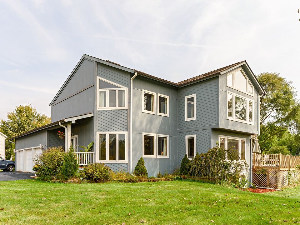 Remarkable contemporary w/post & beam construction! Hardwood floors throughout just refinished! Vaulted ceilings, open floor plan & walk-out basement. Situated on an acre lot on quiet cul-de-sac. Charming sitting room & private balcony off master suite w/spacious marble-floored spa bath & 2 walk-in closets. Radiant heat in floors plus ducted c/a. Loft could easily become 4th bedroom. Hardie board siding & huge Trex deck (as is) w/2 sitting areas. Large kitchen w/double oven, great counter space, desk & eating area. Separate dining room. Lower level has huge rec room w/unique bar, big storage area & room for a bathroom. Oversized 3.5 car garage (space for boat, camper, "toys"?) & circular driveway. House was designed & built by an architect to be his own home. Country feeling but just minutes from shopping & restaurants plus Barrington & Fox River Grove amenities. Low taxes. Unincorporated Lake County. Same schools that Barrington Hills' students attend.