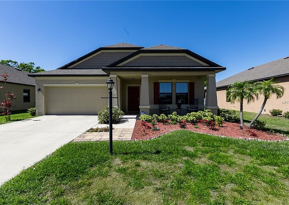 Stunning 3 bedroom, 2 bath home, Hampton D floor plan, finished in 2015 in Palmetto Estates. Come home to your relaxing front porch, you will not run out of space, as this home boasts an open concept with a bonus flex space just off the entrance, and an additional media room. Entertainers' dream kitchen is loaded with builder upgrades, 42'' cabinets, granite countertops, oversized island, dry bar, and corner pantry which opens up to eat-in dining room and the living room. The master suite is sure to impress, large bedroom with tray ceiling, walk in closet, and ensuite bath with dual sinks, soaking tub, stand up shower, and separate toilet. Split plan with two additional bedrooms and a media room separating them, leading to the large laundry room and second bathroom. Enjoy low HOA, no CDD, and low utilities thanks to upgraded tinted windows in every room and solar powered water heater. This house is a must see to appreciate the amount of space. An easy commute to St. Pete., Tampa or Sarasota and easy access to I-75. A short drive to Ellenton Outlet Mall, for shopping and many restaurants nearby. This is the perfect place to call home!