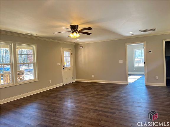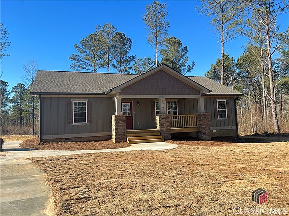 Under Construction in Comer! This 3 bedroom, 2 bath home features a spacious and open split bedroom plan. In the kitchen you will enjoy plenty of cabinet and countertop space as well as a large pantry and a laundry room with cabinets. Fall in love with the granite topped island, granite countertops, stainless appliances, tile backsplash, and white shaker cabinets. The bedrooms are generously sized. The master suite features a huge walk in closet in the ensuite bath that feautures a custom, oversized tile shower! Enjoy all the seasons on the front porch overlooking the park across the street as well as the covered rear porch on your level lot, surrounded with trees! The upgrades continue on the exterior with 3/4 stacked stone columns, board & batten shutters, board and batten side on the front, shaker accents, and more! Estimated completion is 1/2023.