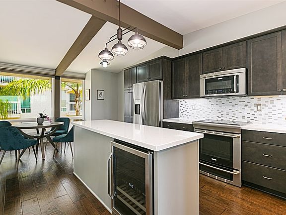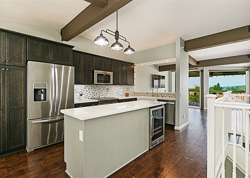 Ocean View La Costa Townhome perched above the Omni La Costa Resort, overlooking the Pacific Ocean and Batiquitos Lagoon. Highly-upgraded home is bathed in natural light. Features dual pane windows, vaulted ceilings and exposed wood beams. Large picture windows allow for plenty of light and gorgeous ocean, sunset views. Quartz Counters, Whitehaus Farmhaus Fireclay Sink, Diamond Reflections Cabinets, Maple Wood Doors w. separate Island & Breakfast Bar. Birch Flintlock hand-scraped engineered hardwood floor Kitchen features designer Quartz Counters, Whitehaus Farmhaus Fireclay Sink, Diamond Reflections Cabinets, Maple Wood Doors with separate Island and Breakfast Bar. High-end Stainless Steel Electrolux appliances. Birch Flintlock hand-scraped engineered hardwood floors on the upper level and stairs Popular floating stairs, Royalty Carpet in the bedrooms and upgraded baseboards throughout. Enjoy ocean views from the master bedroom and balcony. Second bedroom features large closet with bonus storage area behind, as well as a slider to another patio area. The direct-access, 2 car garage has a full laundry area, utility sink and tons of extra storage. There are also 2 additional driveway parking spots which is very rare for a condo in Carlsbad, 4 total parking spaces!