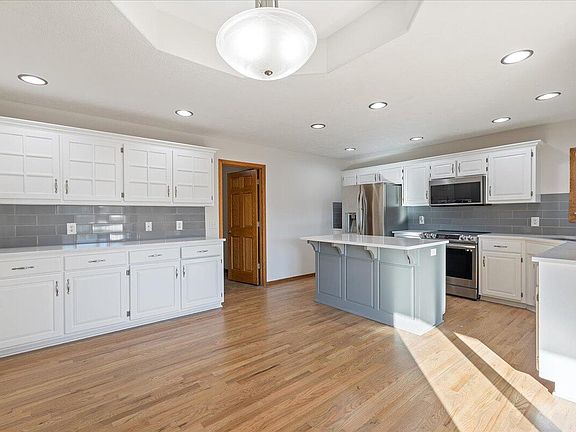 One owner move-in ready four bedroom/three bath walkout ranch now available in Lewis Central School District. Large covered deck and fenced yard with mature trees and landscaping. Master suite with private bath and walk-in closet. Beautiful white kitchen with solid surface countertops, subway tile backsplash, and separate beverage frig. large main floor laundry with soaking sink and 3 car garage. Lower level bedroom is over 19' long.