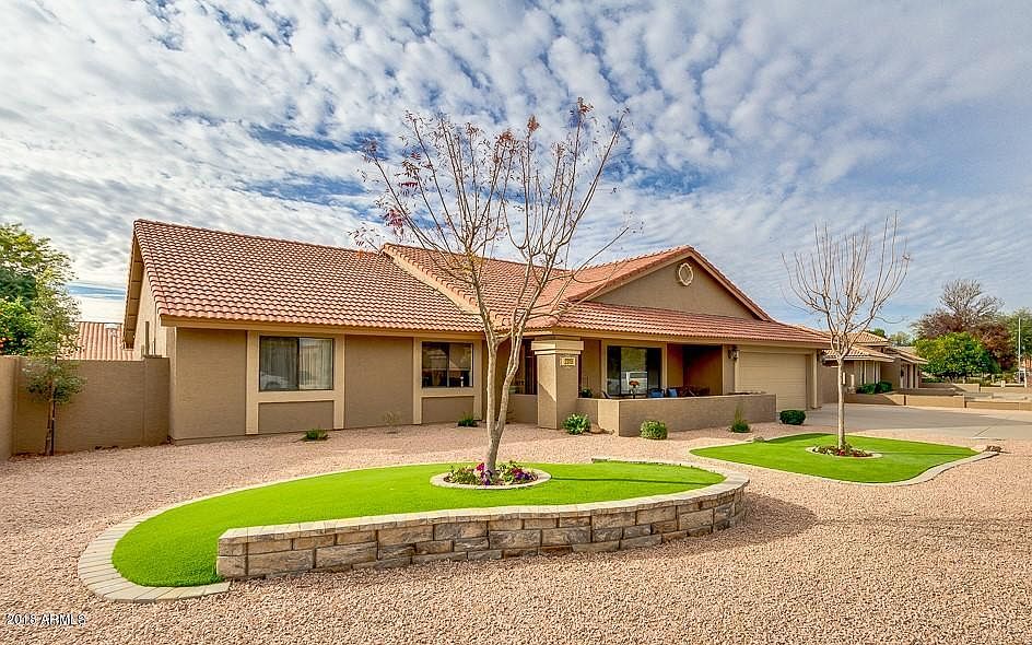 Pristine 5 bedroom, 2.5 bath home for sale in Mesa, AZ on almost 10,000 square foot, north/south lot with no HOA! This is not just another house on the market. It all begins with curb appeal with new front landscaping, new exterior paint and a cozy front courtyard. Then step inside and feel the warmth and care that truly welcomes you home. Not only is this home immaculate but it is very tastefully done from neutral colors with accent walls, to new carpet and plank, wood-like tile flooring, to the updated kitchen with granite counters, glass tile backsplash, stainless steel appliances and two pantries. The aged barn wood shiplap touches throughout, the oversized baseboards and remodeled bathrooms all add to the charm of this amazing home. Relax at the end of the day in the spacious master bedroom with bay window, walk-in closet, beautifully remodeled bath with custom tile, leather granite counters, dual sinks & separate shower and garden tub. New light fixtures, faucets, sinks, toilets, ceiling fans, water heater and much more are all added bonuses! The backyard tops off this dream home with a large, tiled, screened in Arizona room, a beautiful pebbletec pool with soothing waterfall and jet area, lush landscaping, 12' RV gate plus 60' RV slab and a new, large vinyl storage shed that looks more like a small home! The garage has added space for storage or workbench area and ground polished concrete flooring. You don't see too many homes like this on the market. Make sure you don't miss this one!