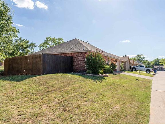 Terrific 3 bedroom/2 bath home in Crestwood Estates on corner lot. Full brick for ease of maintenance. Kitchen and living room have vaulted ceilings. Large U-Shaped kitchen has loads of cabinetry and counterspace, including a wrap-around bar. Stainless steel refrigerator stays with acceptable offer! Hand-scraped look on engineered wood flooring throughout living areas. Primary bedroom has trayed ceiling and en suite bathroom has beautiful new walk-in shower. Fully privacy fenced-in back yard has large patio for cookouts or a hot tub. The yard backs up to a large common green space with beautiful trees. Quiet yet accessible to OSU and shopping. Come call me HOME year-round and for those OSU game weekends. Go Pokes!