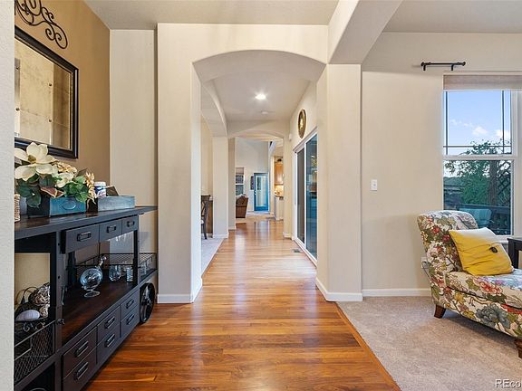 Your dreams of living on a golf course have just come true!!! This stunning home backs to the 10th hole at Red Hawk golf course and overlooks the gorgeous Santa Fe Bluff. Fall in love with this homes beautiful indoor amenities such as walnut hardwood flooring, recently finished basement with additions such as an in home theater space, built in bar area, game/rec room, and additional hobby/office space. If you're not in love by the time you're finished touring the inside, this homes outdoor space is sure to solidify your decision boasting a generous sized covered front patio with views of The Rock of Castle Rock, a trex deck off to the side of the home just outside the formal dining area, and a spectacular back yard featuring not only a double decker trex deck, but also a hot tub, fire pit area appointed with custom low-maintenance turf/ paver landscaping, and grassed area. Last, but not least, solar was installed in this home in 2021 for this homes additional luxury, low-maintenance appeal. Don't miss this stunning Castle Rock home!