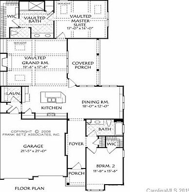 New ranch construction scheduled to begin in June. Honeysuckle plan designed by Frank Betz and Associates. Alternate bath and skylights are optional at extra cost. 1813 Sq Ft