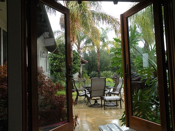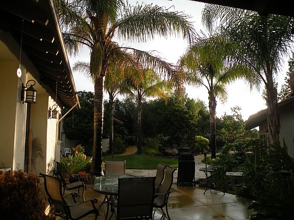 This is a custom built Spanish home wrapped around a private courtyard. Oaks & Redwoods create a nice backdrop. The Queen Palms are something else!