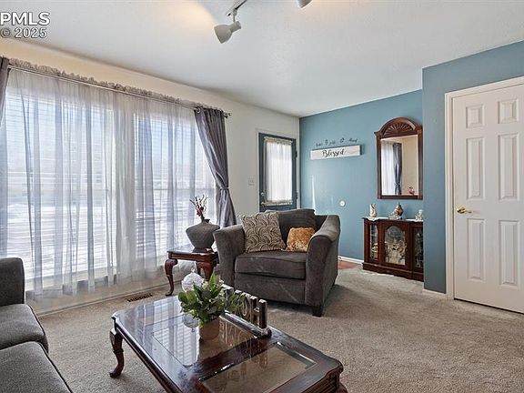 Beautifully maintained 4BR, 2BA, tri-level home located on a cul-de-sac lot in the quiet SE neighborhood of Southborough. Open floor plan w/ 1739 square feet of well designed living space. Recent upgrades incl a 2024 water heater and a new main plumbing and drain line. The wood floor Entry leads into the inviting Living Rm, complete w/ neutral carpet, track lighting, and a large front window w/ sheer and curtain, allowing for beautiful natural light. Flowing seamlessly into the Dining Rm and Kitchen, this space is perfect for entertaining family and friends. The Dining Rm features tile flooring, a lighted ceiling fan, and a sliding glass door that opens to the backyard. The well-appointed Kitchen boasts ample wood cabinetry, counter space, a pantry cabinet, and convenient garage access. Appliances incl a dishwasher, range oven, vent hood, counter microwave, and a stylish French-door refrigerator. Upstairs, you’ll find three comfortable BRs, all w/ neutral carpeting (one w/ wood laminate flooring), and a Full Bathroom accessed by the Primary BR and hallway, that incl a vanity, mirror, and tub/shower. The lower level is a cozy retreat, featuring a spacious Family Rm that incl a wood-burning stove/fireplace w/ brick surround and a raised hearth, perfect for chilly nights. Additionally, this level includes a private 4th Bedroom and a 3/4 Bathroom w/ a shower, ideal for guests or multi-generational living. Outside, enjoy the fenced, level backyard, complete w/ a concrete patio and dining set that stays, making it a great spot for outdoor dining and relaxation. 1-car attached garage w/ an automatic door opener, fire rack, and storage space. This home is conveniently located near the Powers Corridor, offering easy access to shopping, dining, and entertainment, as well as the Col Spgs Airport, Amazon, Peterson Space Force Base, and Fort Carson. Don't miss this wonderful opportunity to own a beautifully maintained home in a prime location. You won't be disappointed!