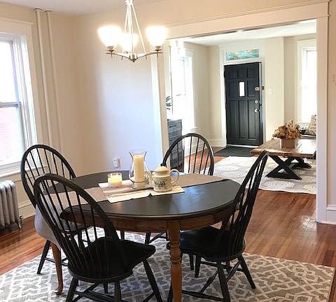 Newly remodeled and upgraded Wilson Home in excellent location. Close to amenities, parks, schools, transportation and shipping. Beautiful original wood flooring, New carpeting, new plank click Vinyl flooring. 2 full baths 1 on the first floor and 1 on the second. Third floor bedroom is heated. Carpeted and has excellent storage. All the windows are new. New hot water heater. Lovely Farmhouse style kitchen with white washer, beamed ceiling. Full dry basement, sealed and painted with outside exit, would make a convenient play room. New storm door. Peaceful covered front porch for ending your day. See it today. Hard to find such a wide Semi, move in condition, in this popular area!