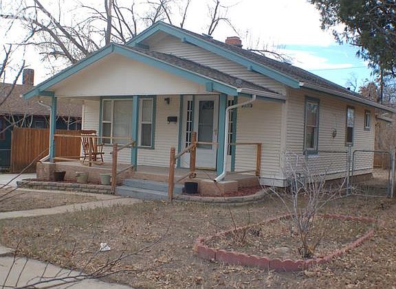 Cute rancher has covered front porch, spacious living room/dining room area, updated kitchen with appliances, 2 bedrooms with jack-n-jill bathroom, new carpet in master, fenced yard, large shed and plenty of off street parking. Home Warranty included! Quick access to I-25, shopping, dining and hospital.