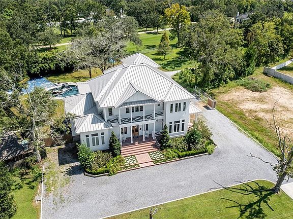 This beautiful 6700 Lv sq ft home is located in Nine Mile Point. By the Huey P Long Bridge, the property sits on over an acre of land with a 1/2 basketball ct, outdoor kitchen & salt water pool with a small lazy river. The second floor balcony overlooks the Mississippi River. This Modern Farmhouse style home is only 4 years old & boasts 12 ft ceilings down & 11 ft ceilings up. Chefs kitchen awaits you with ample counter space. Open floor plan to the spacious living room. A guest suite is above the garage.