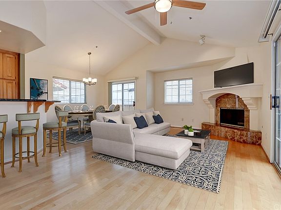 This front unit townhome is the one you have been looking for. The top level has cathedral vaulted ceilings and sunlight pouring through the skylight over the staircase and sliding glass doors that open up to a deck. Imagine sipping your morning coffee with a view of Perry Park. The open floor plan features a formal living room with a cozy fireplace for lazy weekends cuddling up with a book or evening conversation. A second deck suited for a barbecue is adjacent to the dining area. Just imagine the dinner parties!The kitchen is a combination of style and function with granite countertops, matching appliances, recessed lighting with ample cabinet space.French doors open up to the spacious master suite that will feel like a personal retreat with vaulted ceilings and doors that open up to the living room deck for star gazing. Don't miss the walk-in closet with built-ins. Have your own spa day in the ensuite with the oversized walk-in shower, jetted tub and double sinks.A second bedroom is down the hall for your guests. The first level features a large closet for storage under the stairs, a full bathroom and two additional bedrooms. One of the bedrooms will surprise and delight with the custom recessed twinkle lights that mirror the stars in various constellations.Keep cool this summer with your own air conditioning! Ample storage in the spacious garage. Wonderful location with easy access to the 405, across from Perry Park, award winning schools and a few miles from the beach.