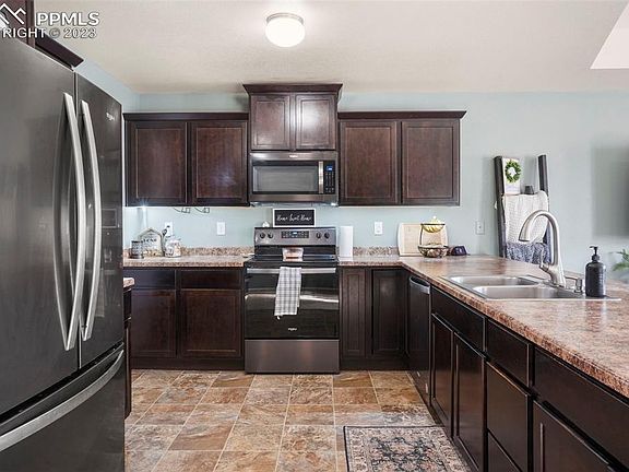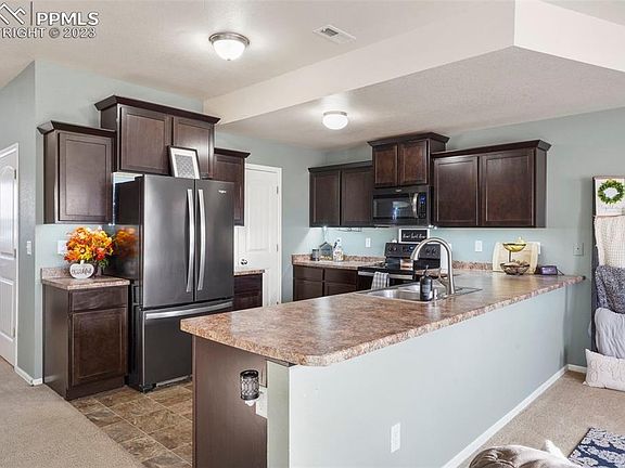 Terrific home located near the popular Powers Corridor, minutes from Peterson and Schriever AFB. The features include an open floor plan, generously-sized master suite master, convenient one-car attached garage, and enclosed backyard patio. The three bedrooms are situated on the upper level, along with a dedicated laundry space for added convenience. The well-equipped kitchen features stainless steel appliances, rich cabinets, and overlooks the family room. The home has warm, neutral colors throughout. Additionally, the townhome is conveniently located walking distance to dog park and new shopping center with a market, dining, and shops.
