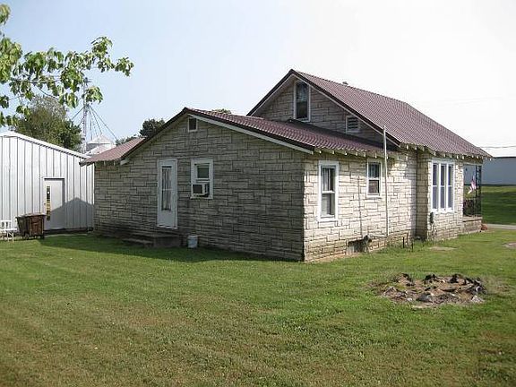 Price Reduced by Thousands!!! 3 Bedroom Bedford Stone home sitting on 1.4 acres on a paved road in rural Orio offers country living at its finest, featuring a 24' x 27' outbuilding, fully equipped kitchen, hardwood floors throughout, newer metal roof and vinyl replacement windows, new LP gas furnace, newer electric water heater, water softener with a partial basement. Offer also includes front-loader washer & dryer set. Call today to take a look!